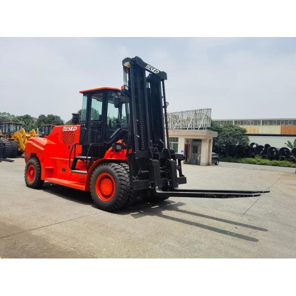 The Heavy Lift Forklift is a container forklift that is specially designed to handle heavy loads and provide high efficiency and reliable performance. It is available in an eye-catching orange red color and can also be customized according to the customer's preference.